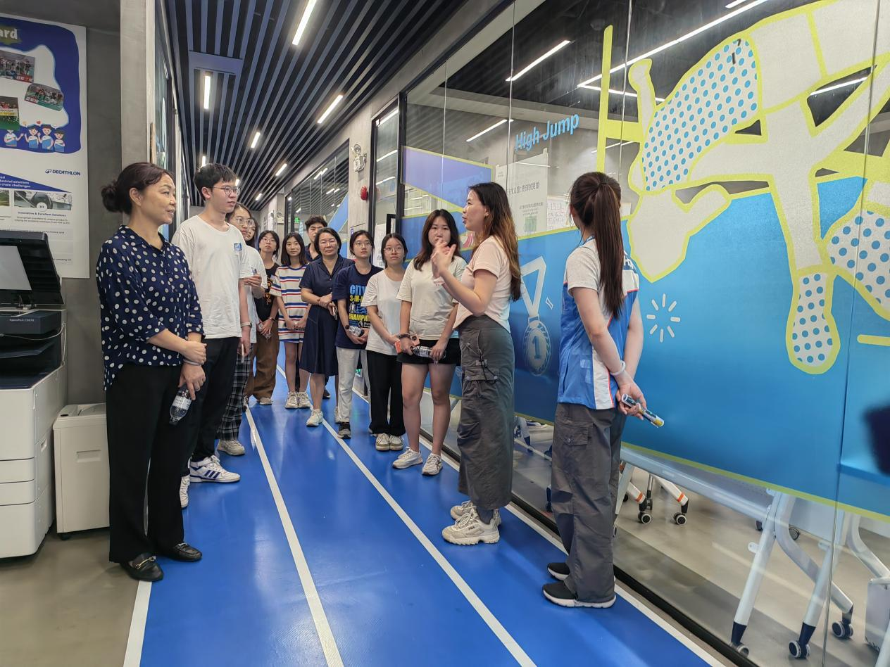 师生参观了迪卡侬的办公区域,对迪卡侬的发展历程、部门设置有了更直观的了解,感受了其“热爱运动、充满活力”的工作氛围和麻豆在线。