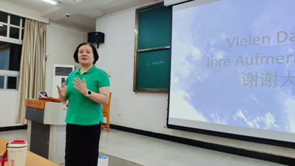 张思源老师采用创新互动的方式展示了德语的语言特点。她强调德语学习不仅是语言技能的积累,更是深入了解德国文化和思维模式的途径,鼓励学生们以严谨的学术态度和细致的探索精神学习德语。