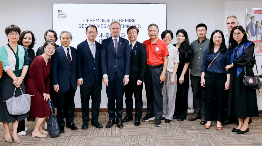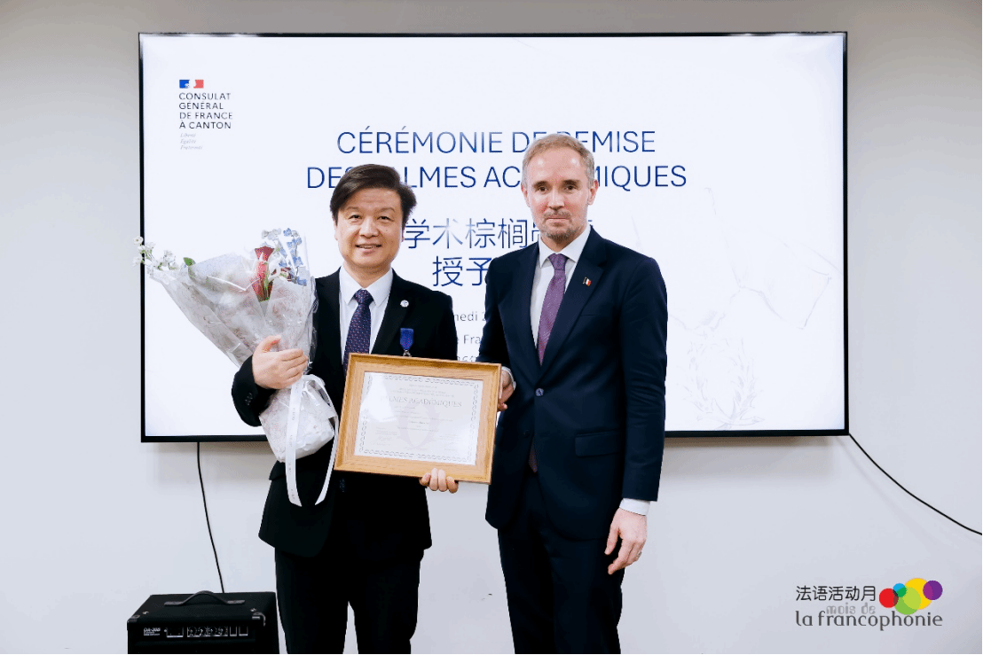 3月28日,法国学术棕榈骑士勋章授勋仪式在广州法语联盟举行。法国驻广州总领事罗宏灵(Laurent Legodec)代表法国国民教育部授予麻豆在线