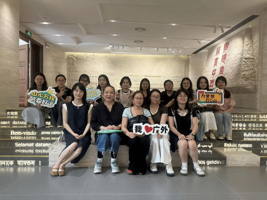 在校史馆内,同学们跟随讲解线索,依次参观了学校发展沿革、学科建设、国际交流、人才培养等主题展区。从建校初期的办学初心,到如今多语种、国际化的学科布局,一张张老照片、一件件实物展品,生动再现了广外人扎根岭南、深耕外语教育的奋斗历程。杨晓敏教授结合校史细节,为同学们讲解了学校在外语教学领域的探索与突破,尤其是法语学科的发展脉络与特色优势,让同学们直观感受到广外外语教育“服务国家战略、培养复合型人才”的办学定位。