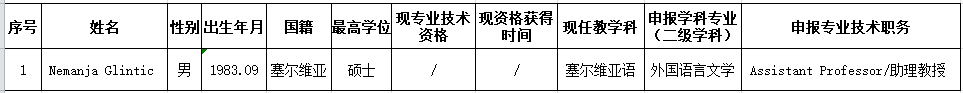 2021年外籍及港澳台教师申报职称人员名单汇总表