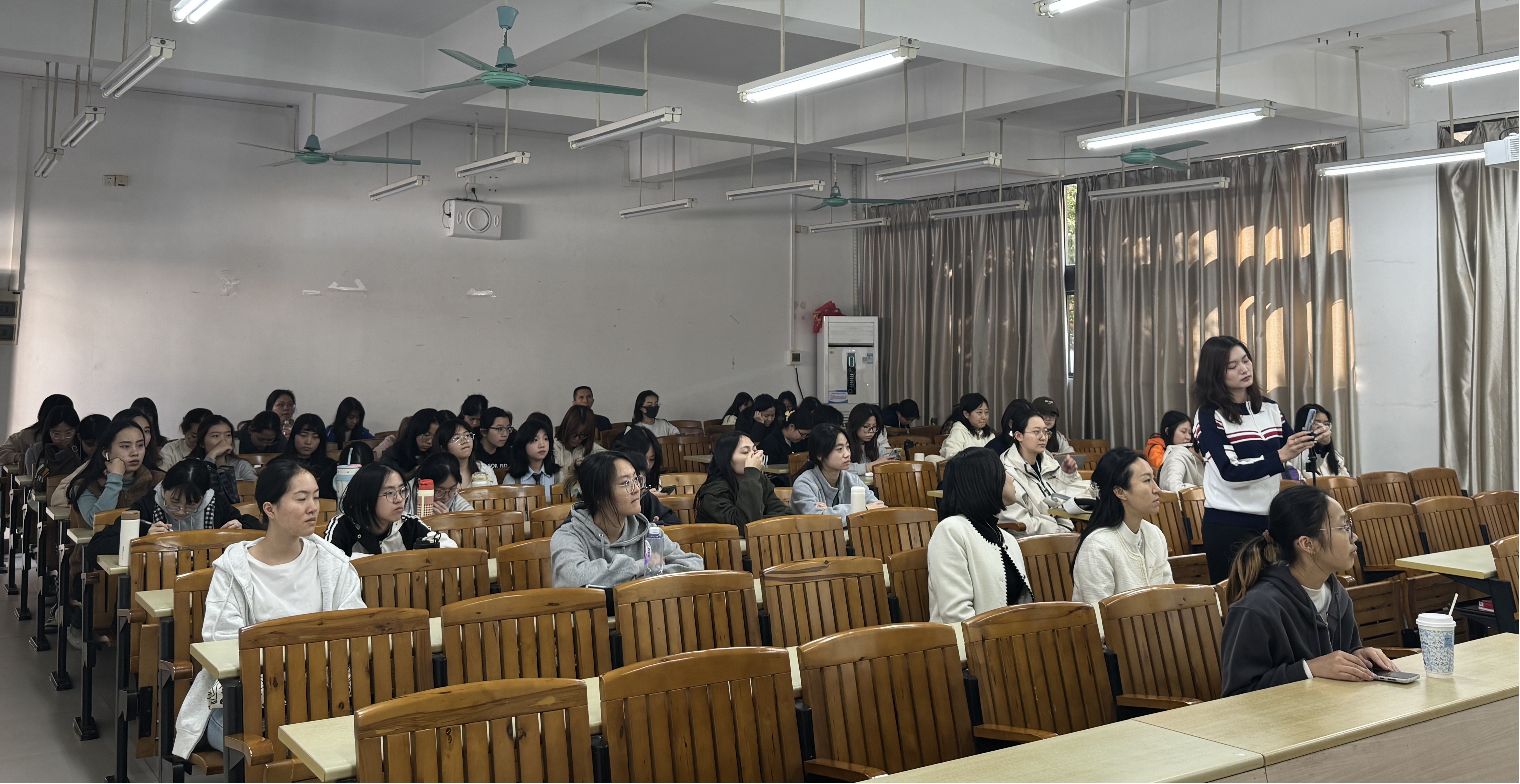 校友会副会长胡舒乔主讲,来自学院各年级近80名学生与师姐进行了交流。分享会由辅导员王斌龙主持。
