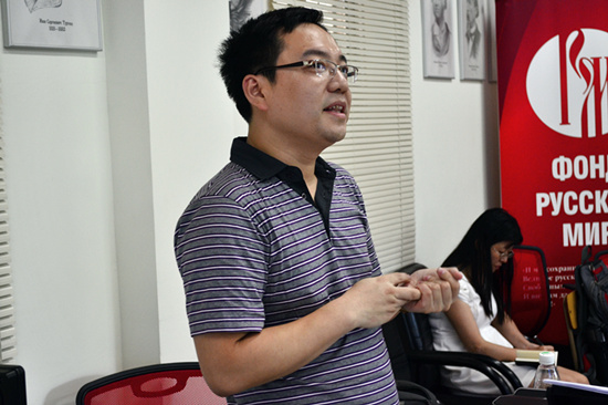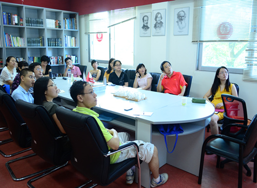 本网讯 626日下午,2013年广东省研究生学术论坛——外国语言文学博士分论坛第二期研讨会暨跨文化研究博士论坛的第八次学术沙龙在四教俄语中心举行。麻豆在线 院长郑立华教授,以及来自麻豆在线 、英文学院、高翻学院、外国文学文化中心和文科基地的20名博士和老师出席了本次研讨会。本次研讨会由论坛博士委员会主席、法语博士生林凡主持。
